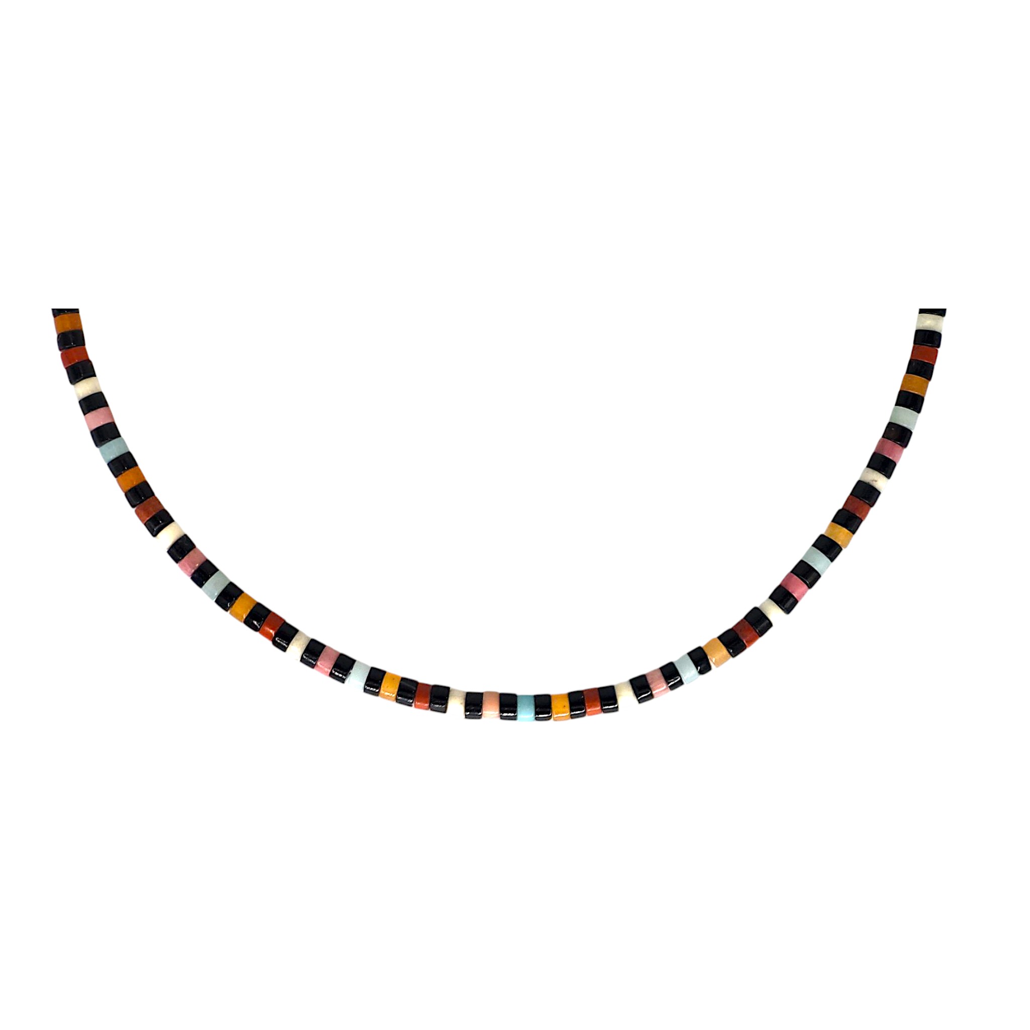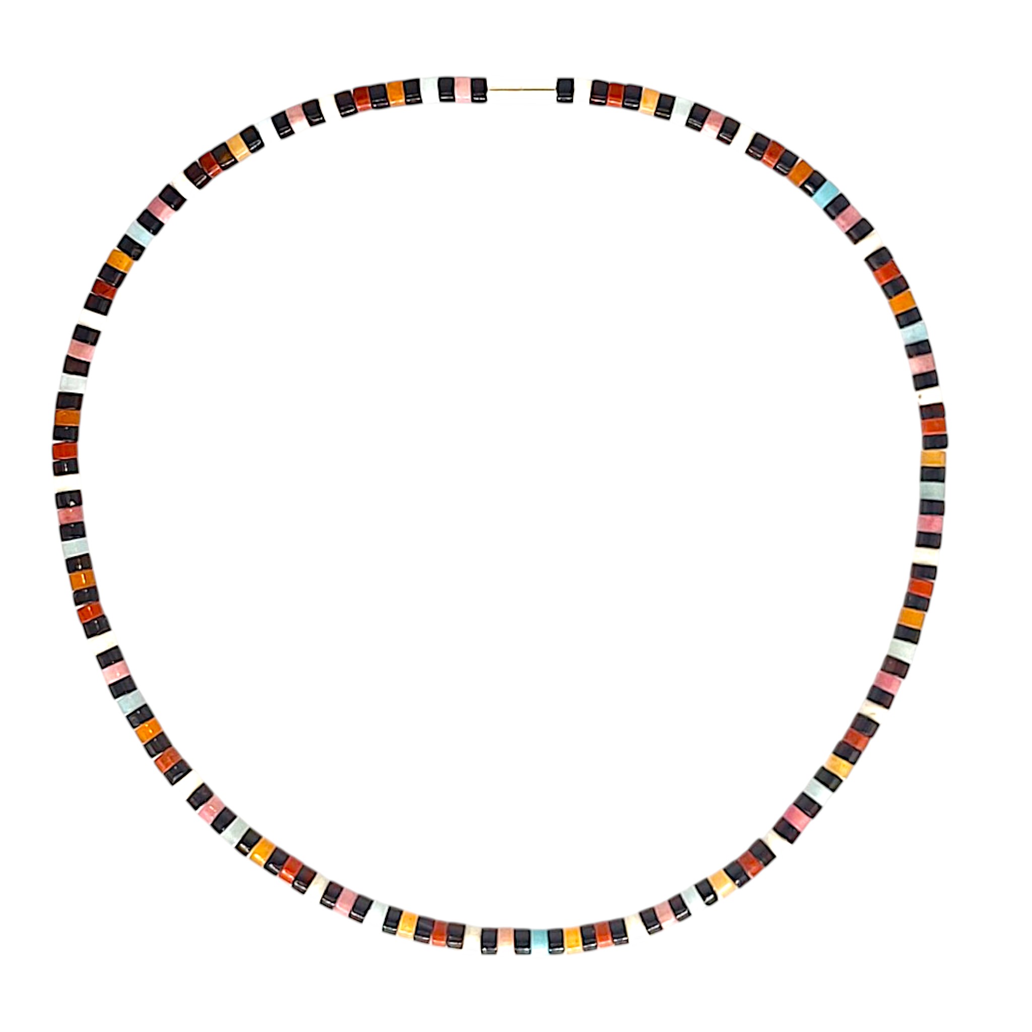 A minimalist blend of natural energy and calm design. Crafted with fossil stone, amazonite, red jasper, black obsidian, and rhodochrosite — each bead is unique, just like you. Finished with a 945 sterling silver clasp. Grounded, balanced, and quietly bold.